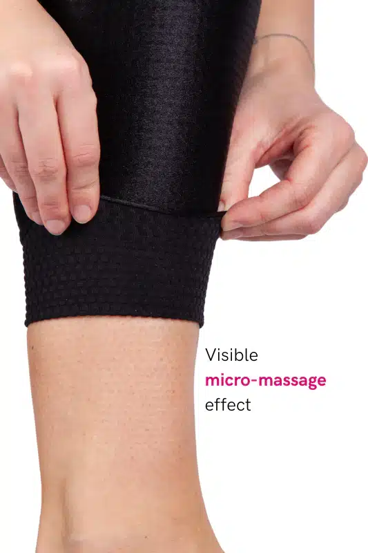 Combinația dintre compresia delicată și efectul de masaj ajută la reducerea presiunii și a disconfortului resimțit la nivelul picioarelor din cauza lipedemului. Colanții FLOW oferă suport și confort zilnic.